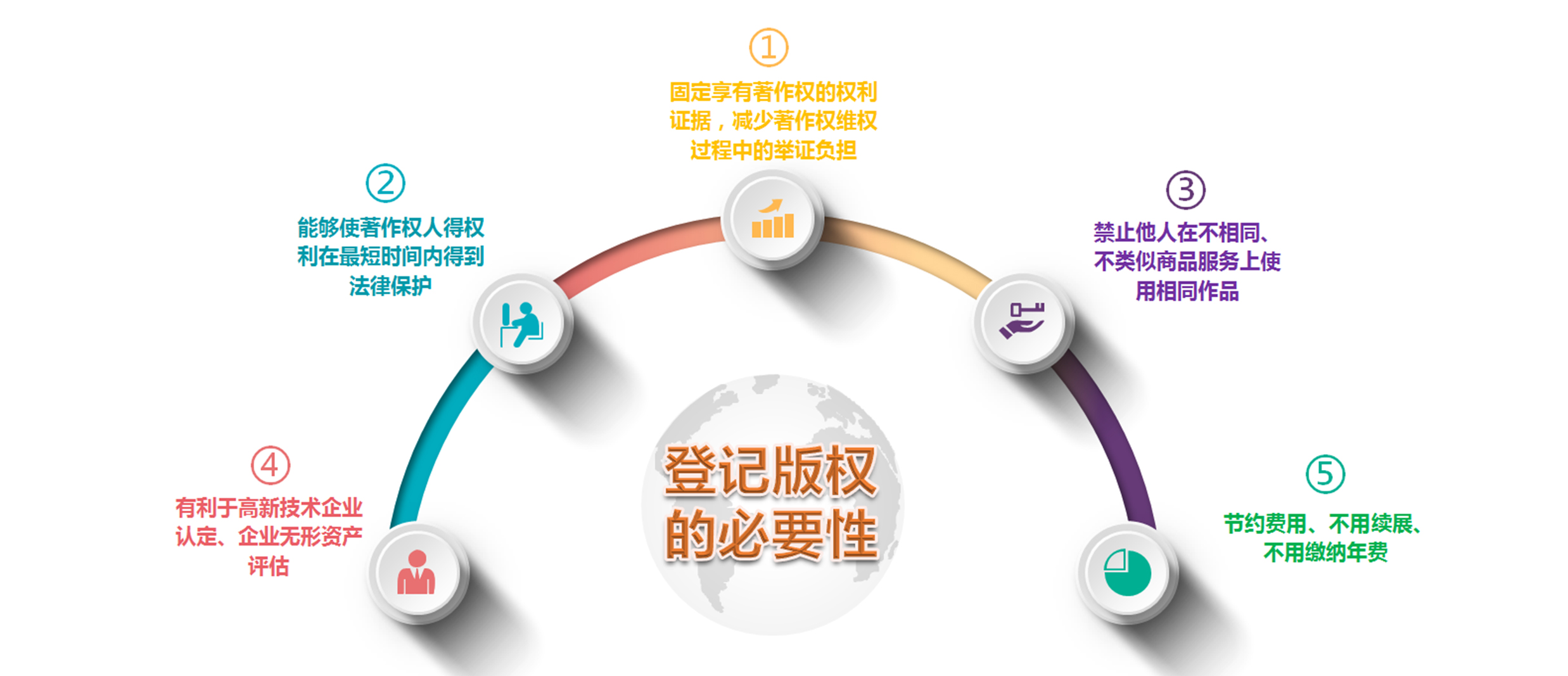 • 獨創性。版權登記的首要條件:作品必須為原創,即為作者獨立思考、構思而產生的作品,且無論作品的優劣,都可申請登記版權;