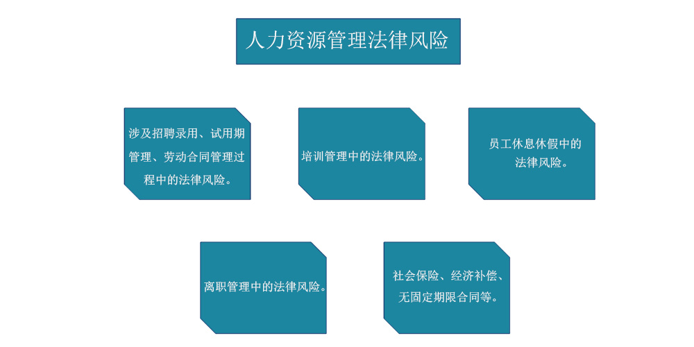涉及招聘錄用、試用期管理、勞動合同管理過程中面臨的法律風險;教育培訓管理中面臨的法律風險;員工休息休假中面臨的法律風險;離職管理中面臨的法律風險;社會保險、經濟補償、無固定期限合同等領域。