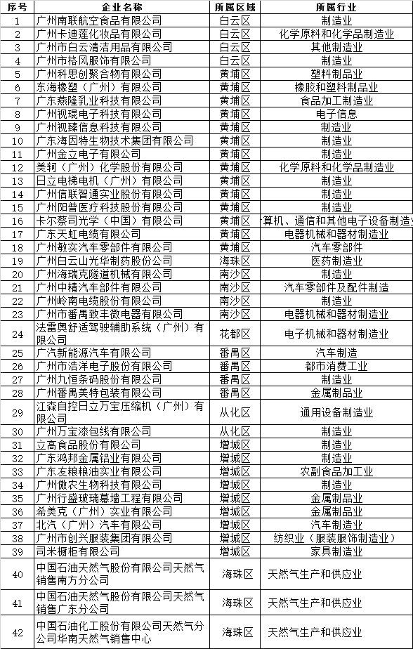 廣州市工業和信息化局關于“三個一批”企業(第三批)入庫名單的公示